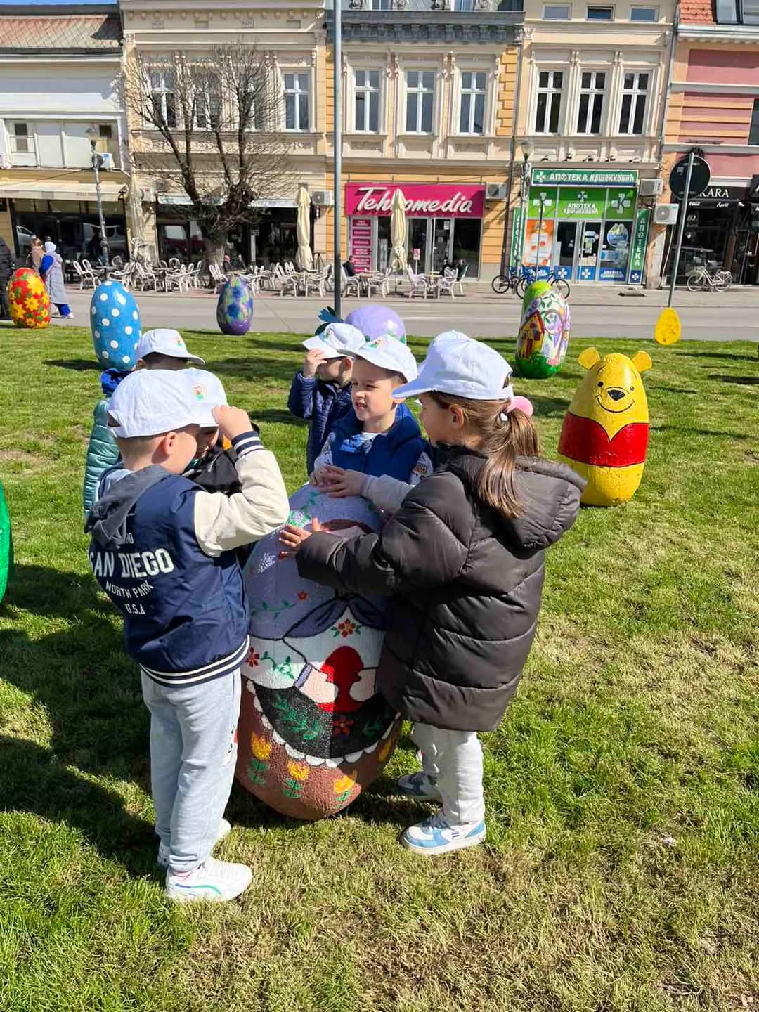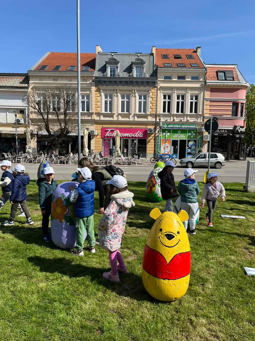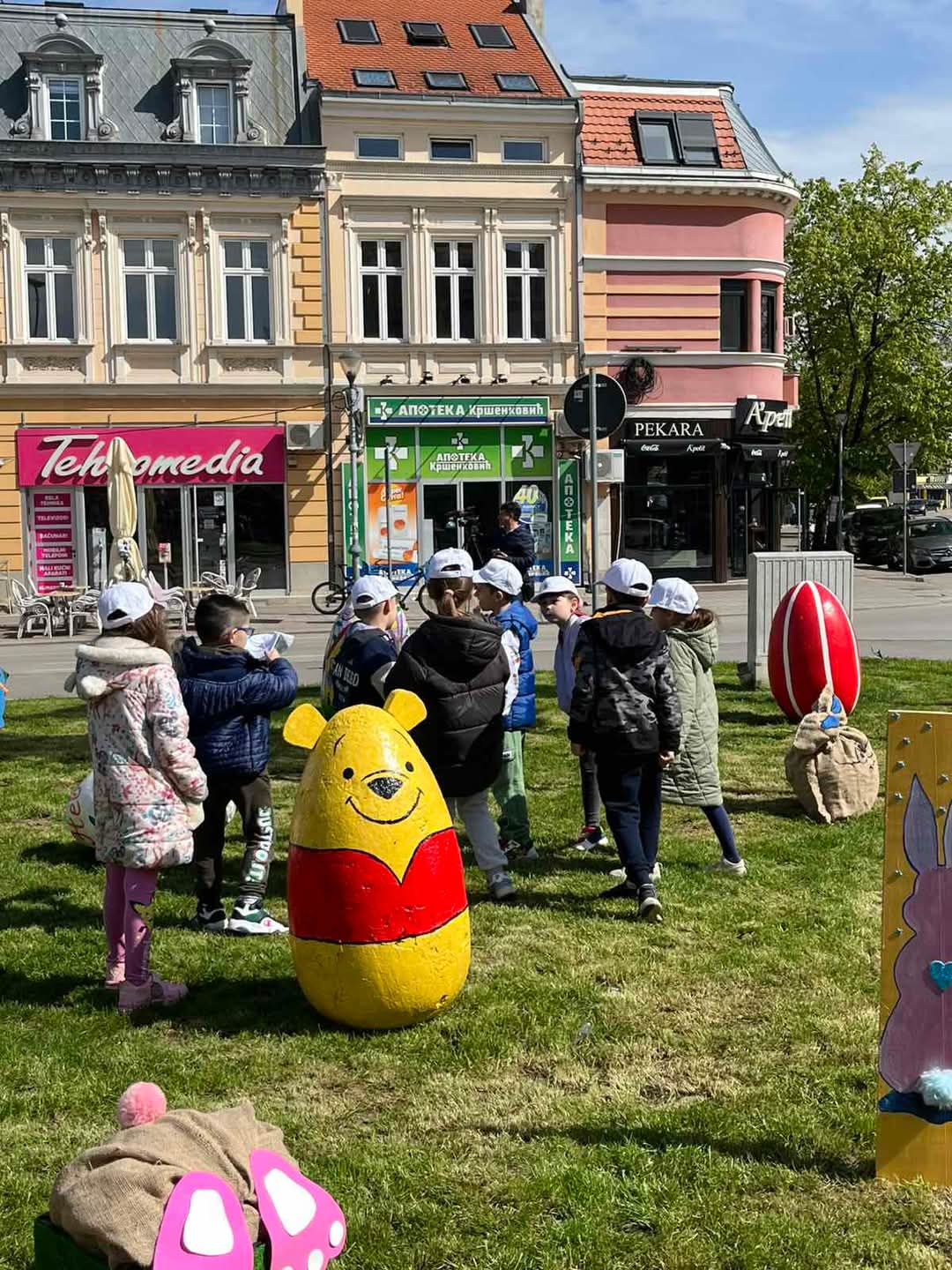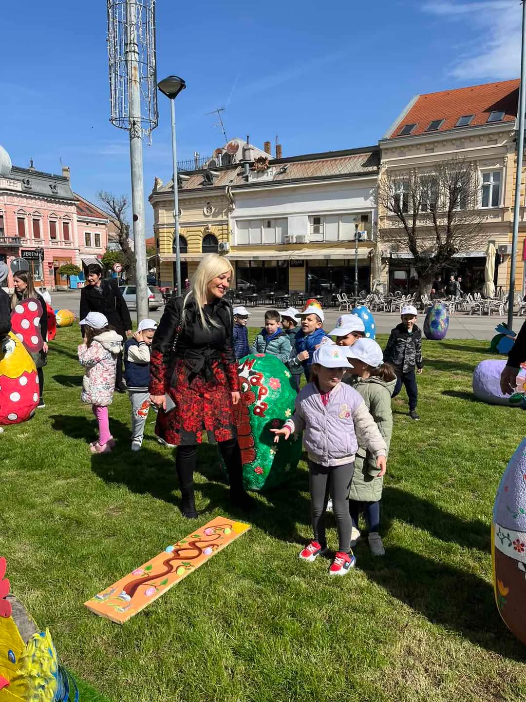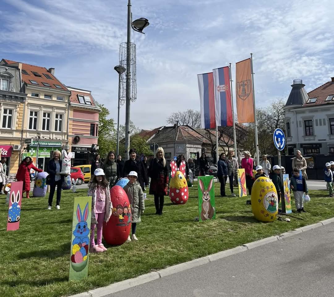 Данас су деца и васпитачи традиционално украсили наш град великим, шареним Васкршњим јајима. 🐰