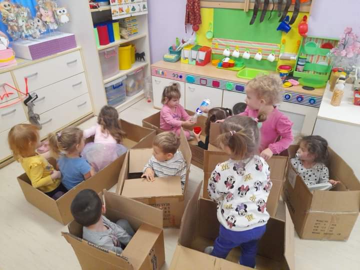 Родитељи доносе разноврсну амбалажу,  коју деца на креативан начин користе за истраживање.