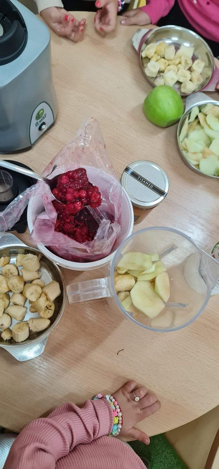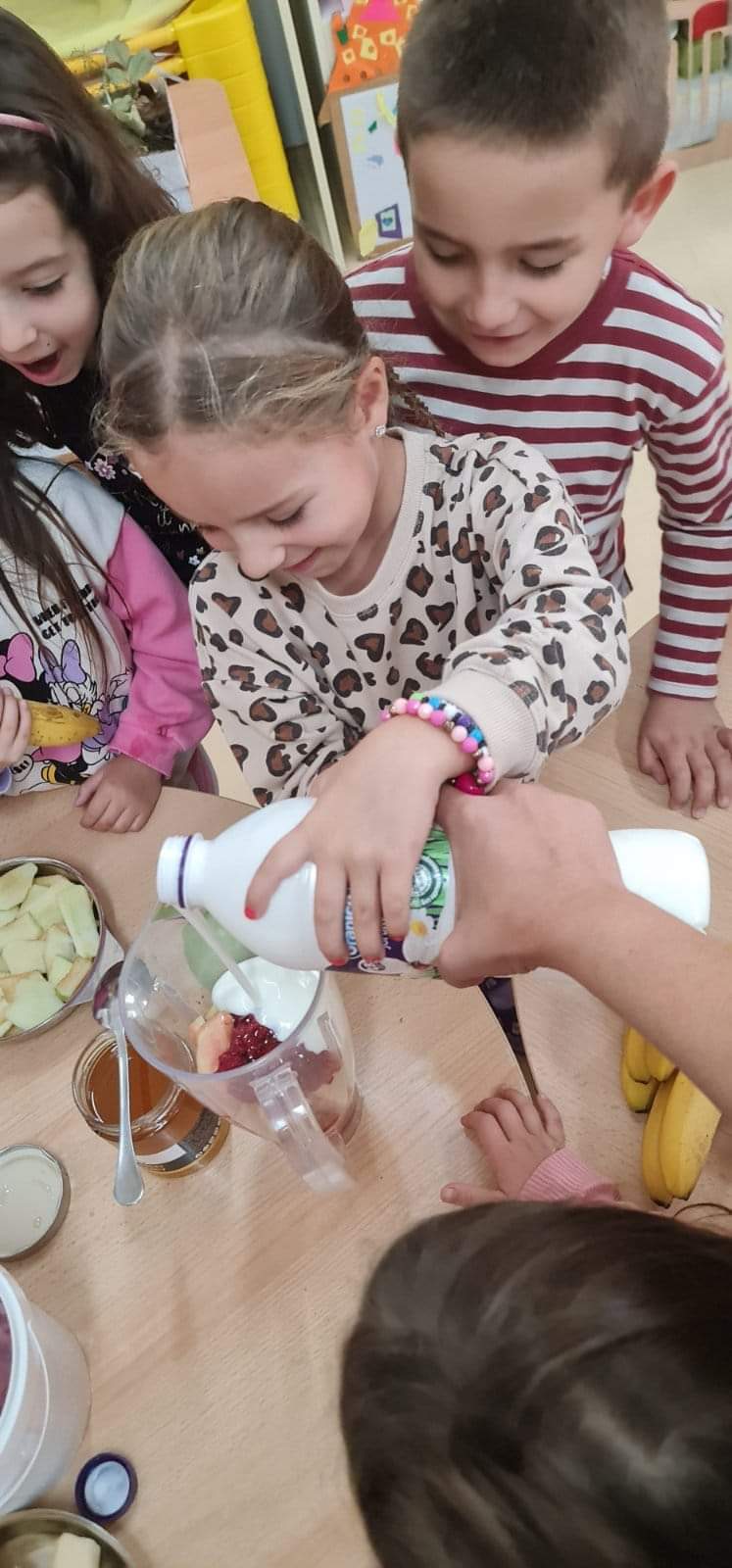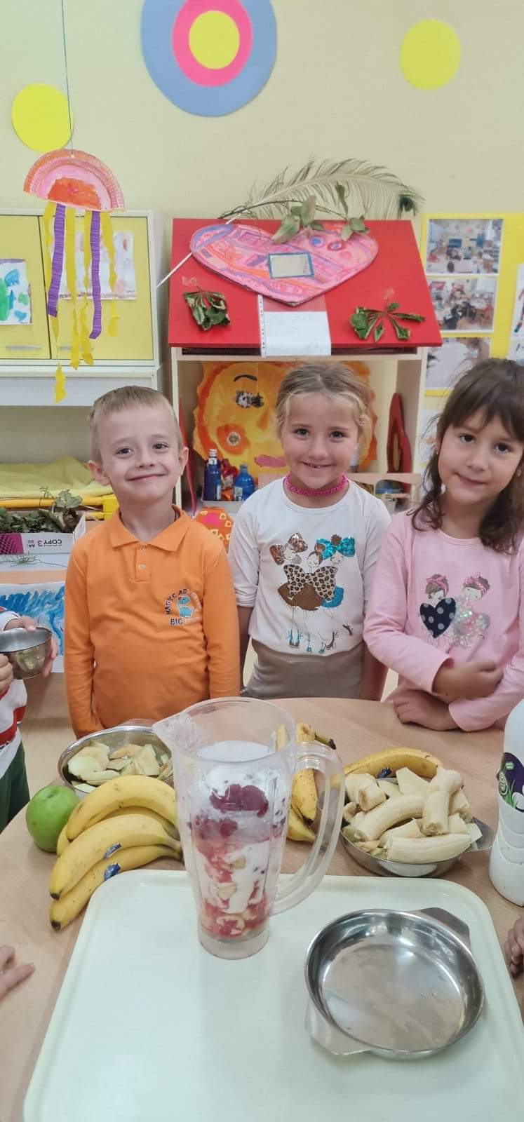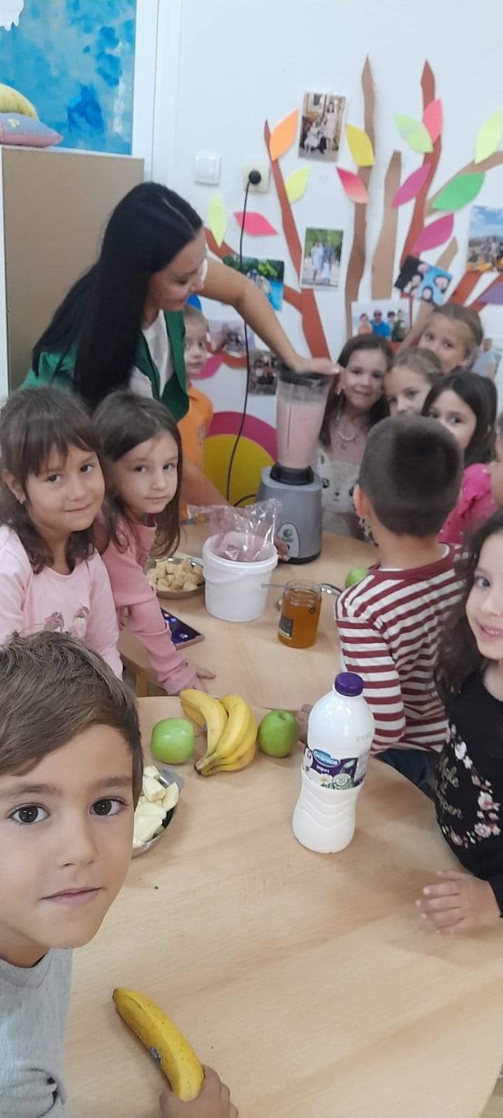 Светски дан здраве хране обележен је у вртићу “ Душко Радовић“ радионицама о значају здраве хране и стварању здравих навика у исхрани. Заједничким снагама припремили смо здрав оброк и у његовом укусу уживали. Рецепт за наш смути: банане, јабуке, микс црвеног воћа, јогурт и наравно мед. ❤️